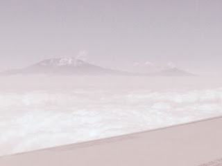 This is it - the Kilimanjaro climb starts tomorrow! Here's a picture of the top of the mountain poking through the clouds as I was flying from Dar es Salaam to Arusha. Yes, that's the plane wing in the foreground.